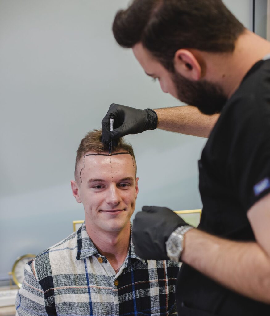 W pierwszej kolejności umawiamy się na badanie wstępne. W jego trakcie ustalimy stan Twoich włosów – zarówno obszaru dawczego, jak i miejsc do uzupełnienia. Ocenimy także liczbę graftów, czyli jednostek potrzebnych do przeszczepu. Jeden graft może zawierać jeden lub kilka mieszków włosowych. Po badaniu możesz zdecydować się na zabieg, który przeprowadzimy w umówionym terminie, w bezpiecznych i komfortowych warunkach, jakie zapewnia nasz gabinet w Warszawie.